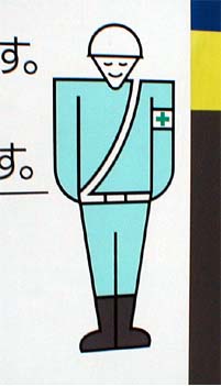 直立不動型ではあるが、なんとまぁ図形的な。手を後ろに組んで、目をつむって挨拶している、と、いささが無礼ではあるが、なかなか素敵なオジギビトであろう。肩の線が分断している所があるため、なんとなく体が斜めに切れているようにも見える(笑)。