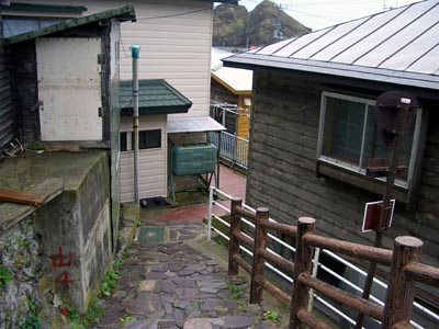 歌碑からほど近い「階段村道」(後述の階段国道のパロディ)を上ると,竜飛崎の展望台に出る。