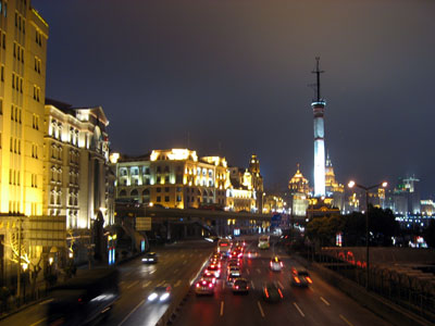 どの建物もデザインが凄いんだけど,一番すごいのは,上海の象徴みたいになっている「テレビ塔」だろう。全くギャグとしか思えない形と電飾だった。写真で見るとそうでもないけど,この「周りの景色に全く溶け込もうとしていない」辺りが,面白いというか,不気味というか。
